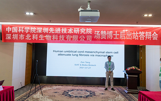 7月27日,由中國(guó)科學(xué)院深圳先進(jìn)技術(shù)研究院與深圳市北科生物科技有限公司聯(lián)合培養(yǎng)的博士后湯贊博士出站答辯會(huì)在北科大廈舉行。答辯會(huì)上,湯贊博士匯報(bào)了題為《臍帶間充質(zhì)干細(xì)胞通過(guò)巨噬細(xì)胞緩解肺纖維化》的出站答