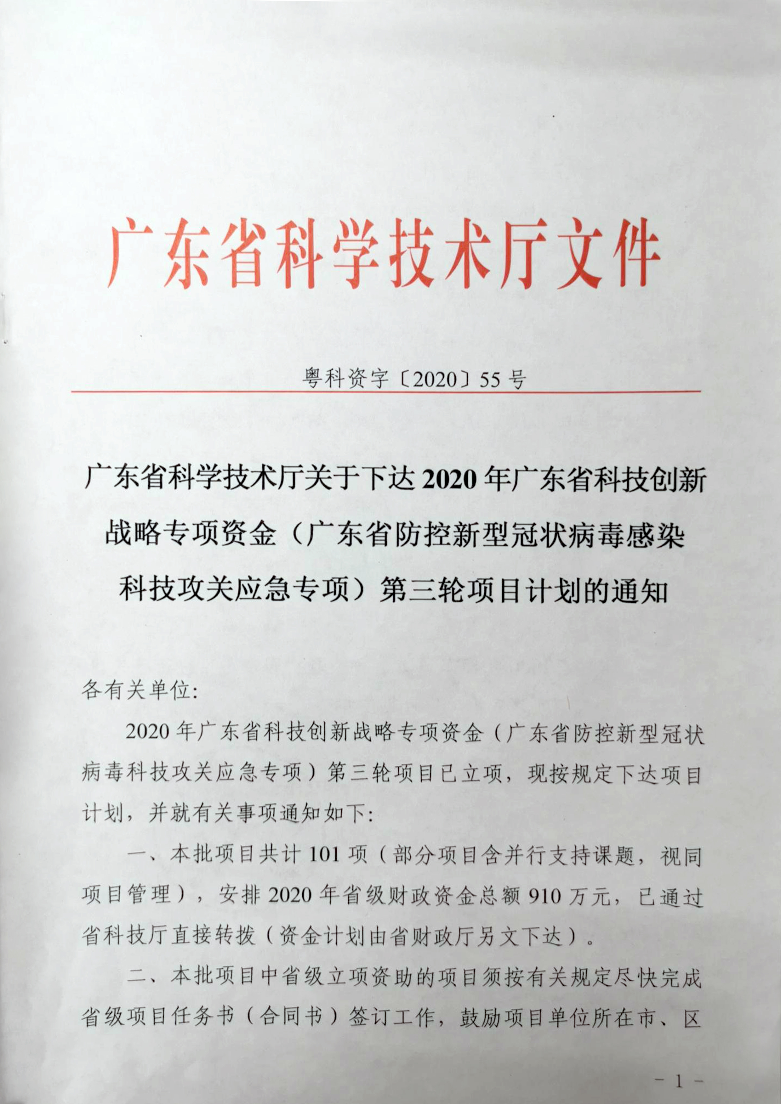 近日,廣東省科學(xué)技術(shù)廳公布了2020年廣東省科技創(chuàng)新戰(zhàn)略專項資金(廣東省防控新型冠狀病毒感染科技攻關(guān)應(yīng)急專項)第三輪項目計劃的評審結(jié)果,三批項目已投入省級財政資金超3300萬元。其中北科生物與深圳市唯一定點(diǎn)收治新冠病毒肺炎患者的深圳市第三人民醫(yī)院合作申報的《人臍帶間充質(zhì)干細(xì)胞治療冠狀病毒引起的重癥肺炎的臨床研究》項目,獲得廣東省科技廳2020年廣東省防控新型冠狀病毒科技攻關(guān)應(yīng)急專項立項。