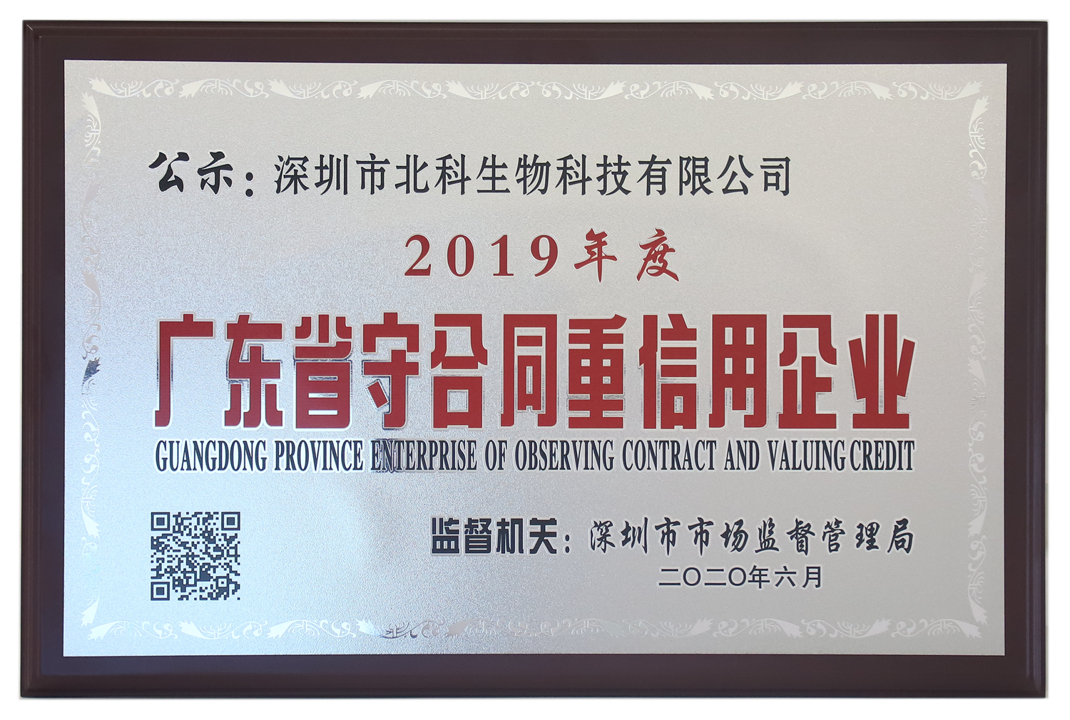 近日,廣東省市場監(jiān)督管理局公布了2019年廣東省守合同重信用企業(yè)名單。北科生物憑借嚴(yán)謹(jǐn)創(chuàng)新的企業(yè)理念、誠實守信的經(jīng)營原則和良好的社會信譽(yù)等方面的優(yōu)異成績,被授予“2019年廣東省守合同重信用企業(yè)”的榮譽(yù)稱號。